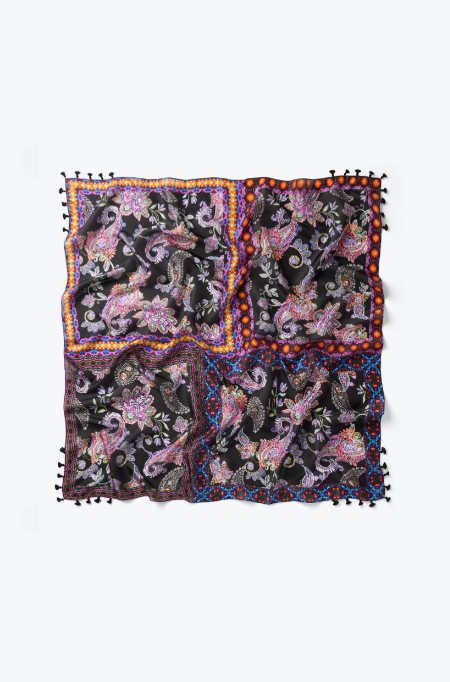 Petra Silketørklæde fra JOHNNY WAS er fremstillet af luksuriøs 100% silke og er udsmykket med et utrolig smukt paisley- og blomsterprint i mættede farver.