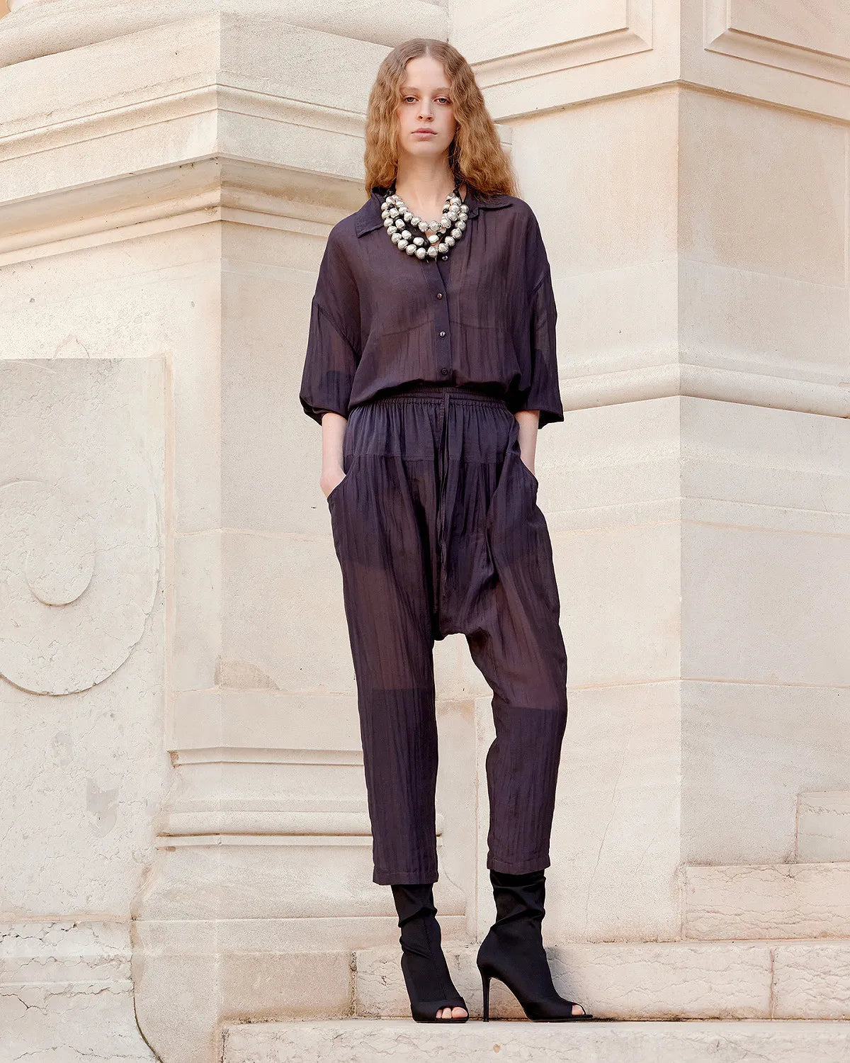 Smukke Loana haremsbukser fra Mes Demoilselles. Bukserne er designet med eleastik i taljen, lommer i siden samt i en skøn bomuld og silkegaze kvalitet.