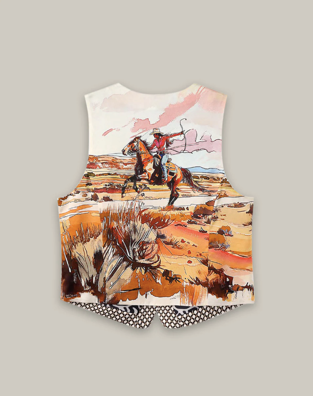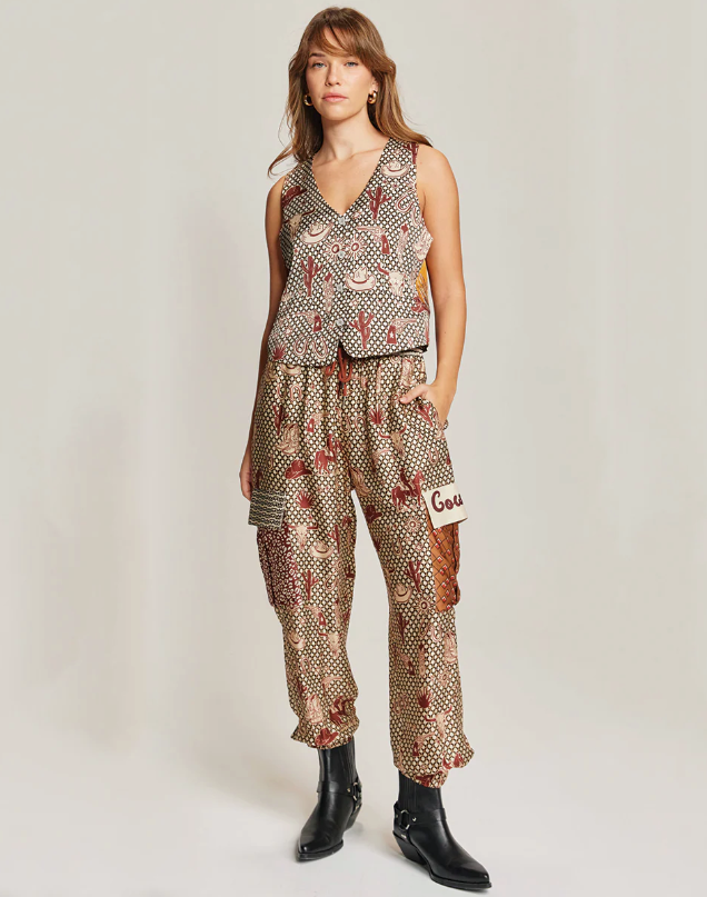 Smuk viskose vest fra ME369. Vesten er med dyb V-hals udskæring, vest med knapper samt i et flot mønstret print.