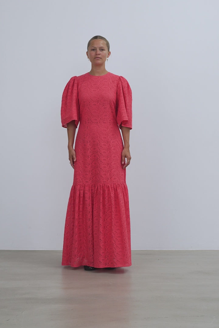 COTTON LACE MAXI DRESS - SUMMER CORAL