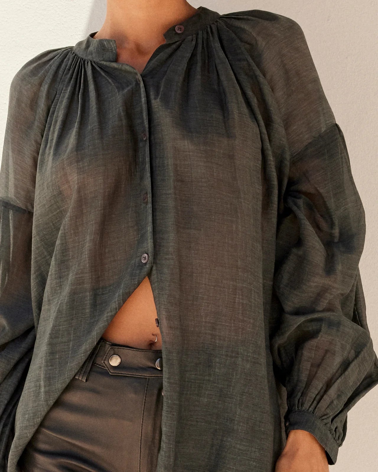 Lækker tynd bomuld silke skjorte Cultura fra Mes Demoiselles i en smuk grå farve.