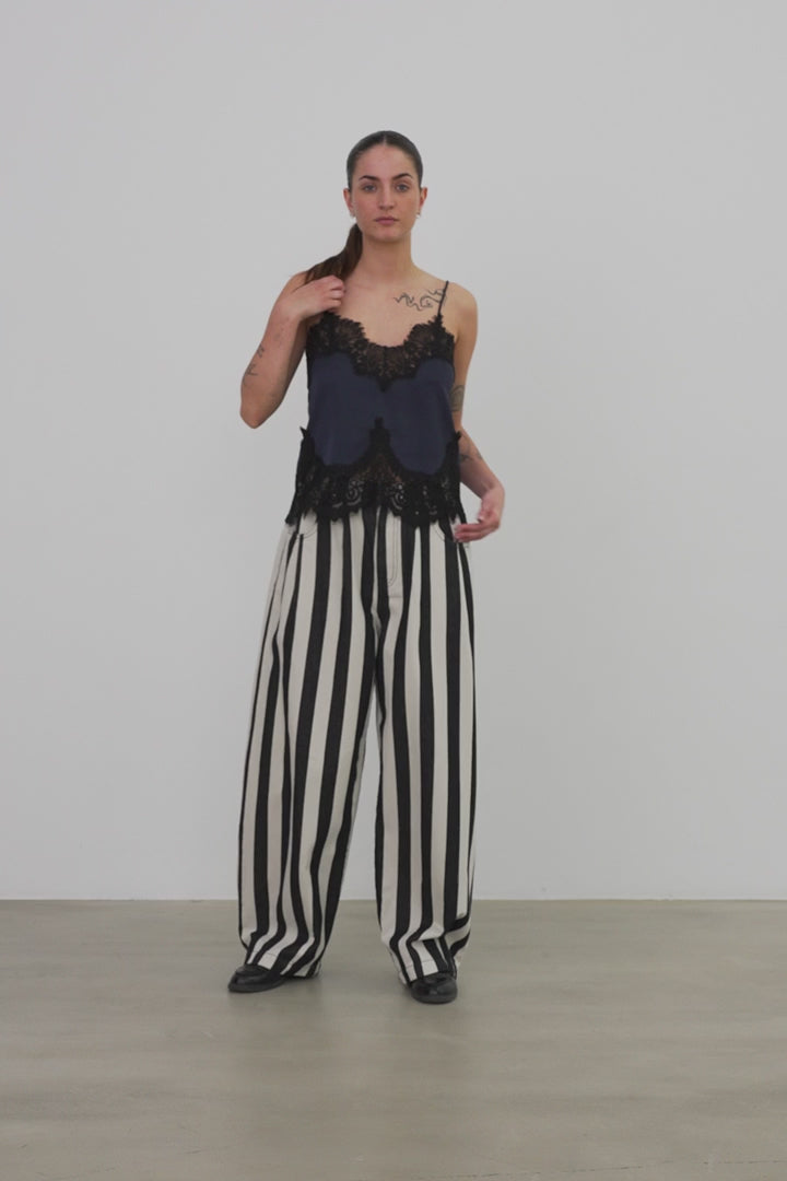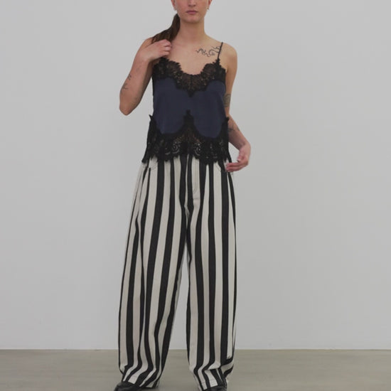 Top i et let, glat stof med justerbare stropper og en fin blondekant ved halsudskæring og kant fra STELLA NOVA i denne smukke ultra navy farve.