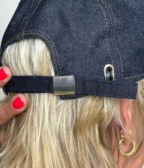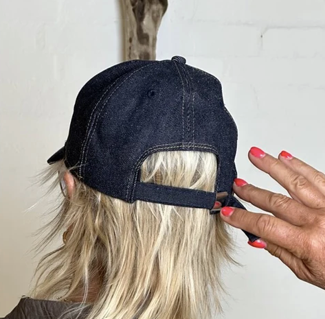 Fed denim kasket fra Gaspar, med guld logo broderi foran samt regulerbar strop bagi.