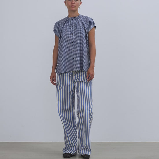DROP SHOULDER OVERSIZE TOP - BLUE CHECKS