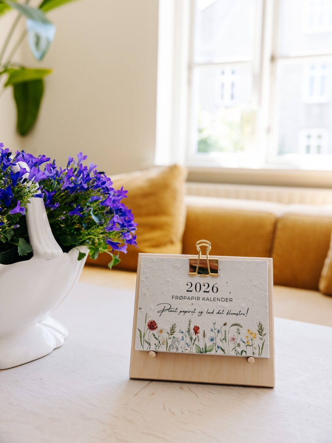 Kalenderen består af 1 forside og 12 sider (januar – december) af frøpapir, samt en bagside, som fortæller, hvordan man planter papiret og hvilke blomsterfrø det indeholder.