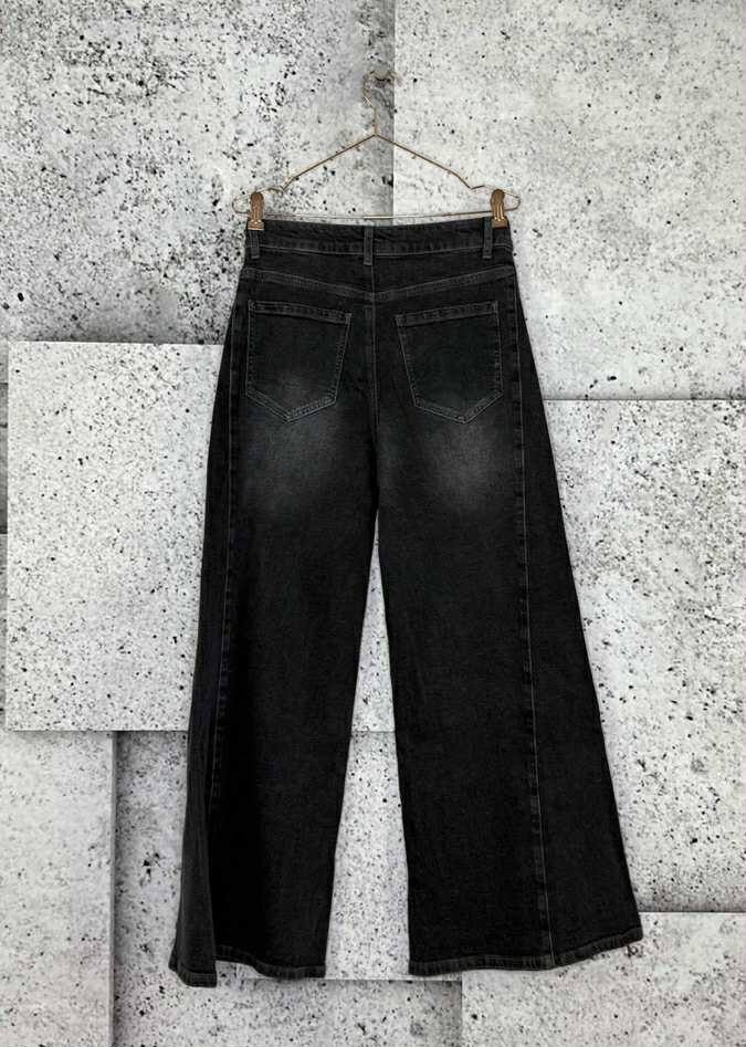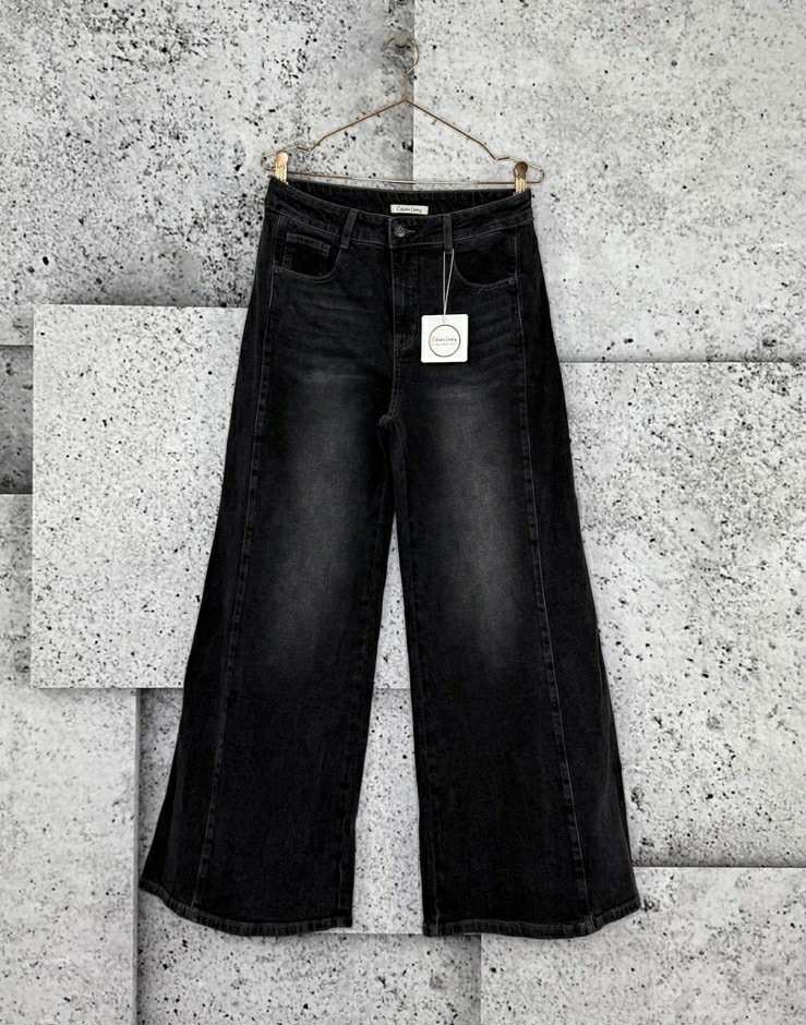 Jeans i en lækker sort vask HALO med brede ben fra Cabana Living.