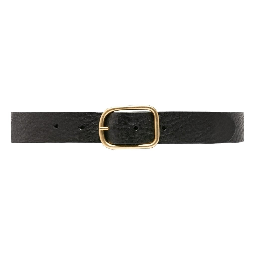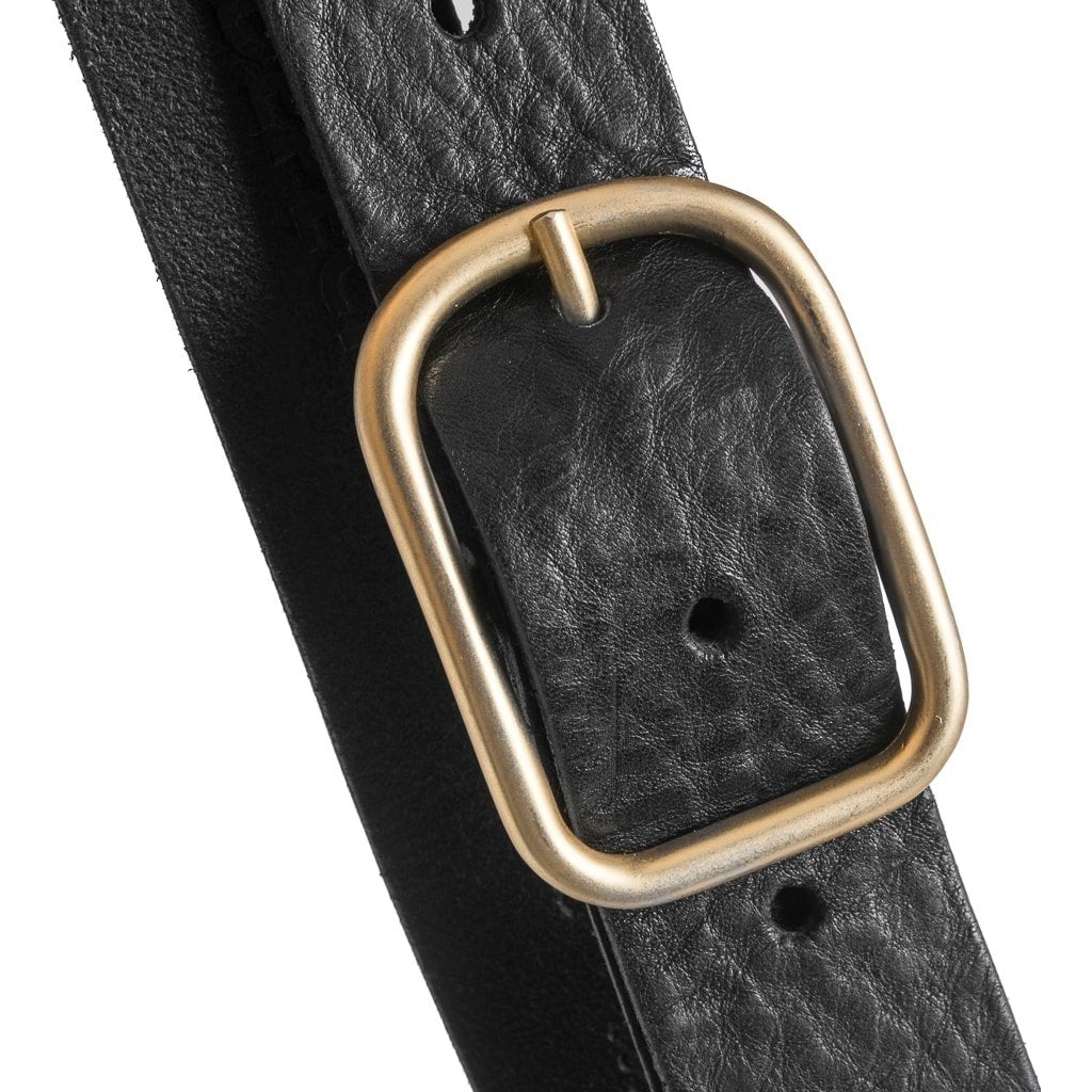 Bredt basis sort bælte fra DEPECHE i lækkert og blødt skind. Smukt feminint bæltespænde i messing.