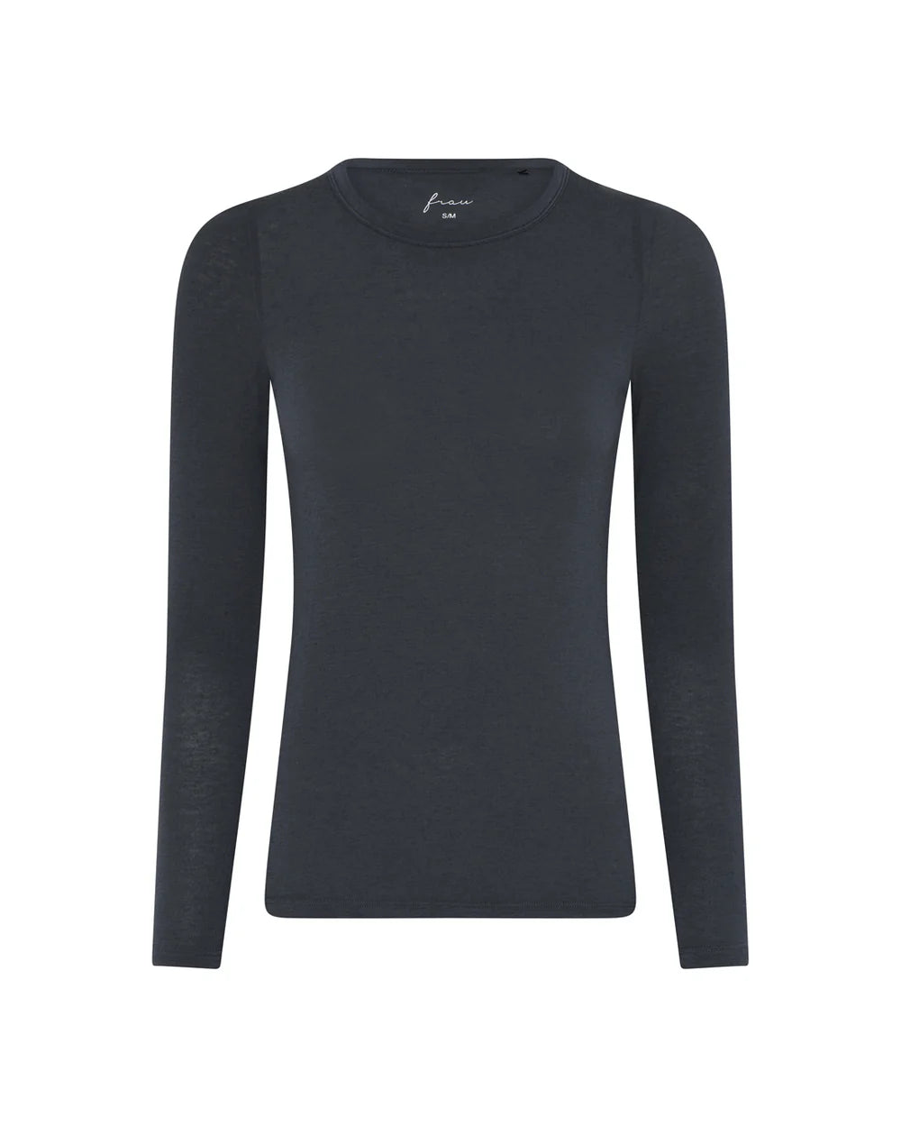 Helt enkelt og klassisk bluse med lange ærmer og rund hals Lucca fra Frau.