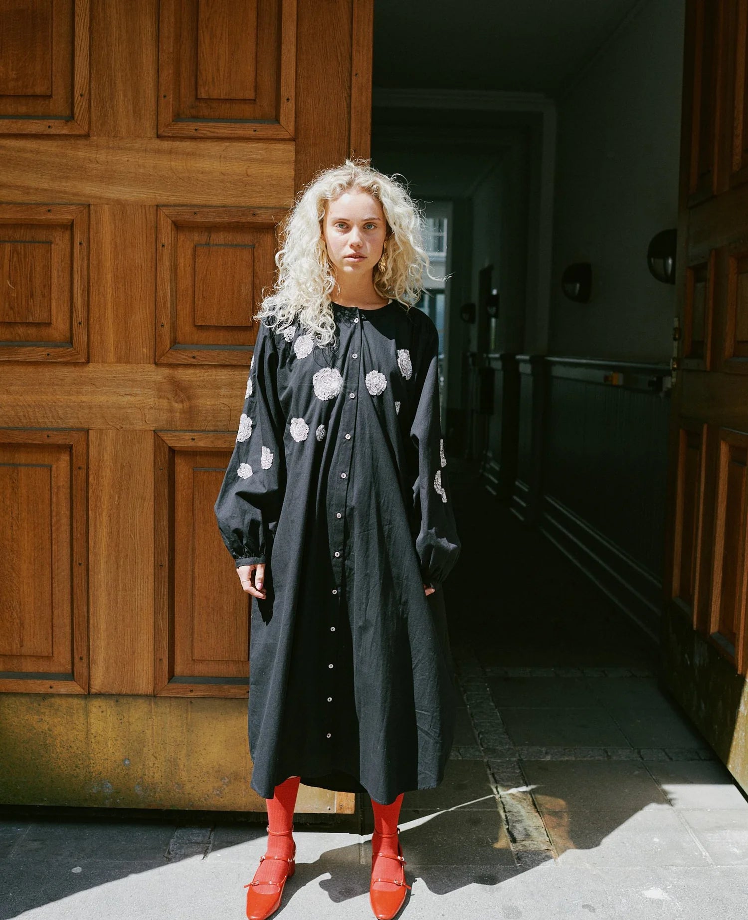 Mildred Dress er en figursyet, løs kjole lavet af 100% økologisk bomuldspoplin fra Sissel Edelbo.