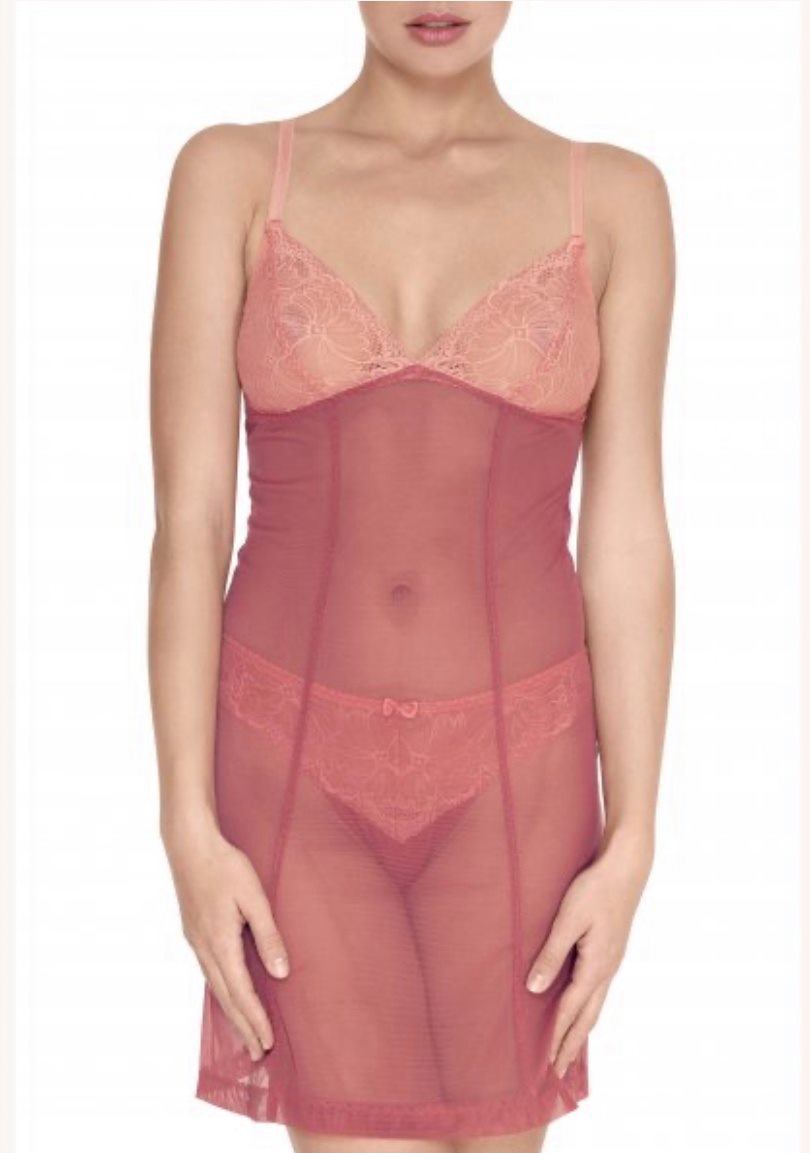 Beskrivelse: Underkjole med blonder i skålene. De lodrette linjer i kjolen fremhæver de feminine kurver. Stropperne er justerbare med små fine guld glidere.