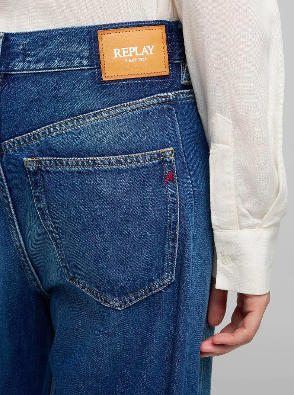 Bukserne er med fem lommer samt designet med vores ikoniske R-broderi på en af baglommerne og logomærket på bagsiden, en karakteristisk Replay-detalje. Lynlås- og knaplukning.