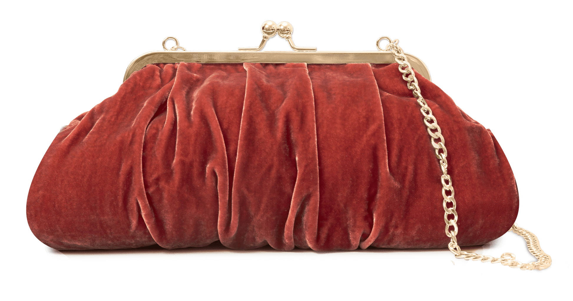 Farve: Yderstof brændt orange silke velour. Foer ferskenfarvet. Metal lukning og kæde guld.