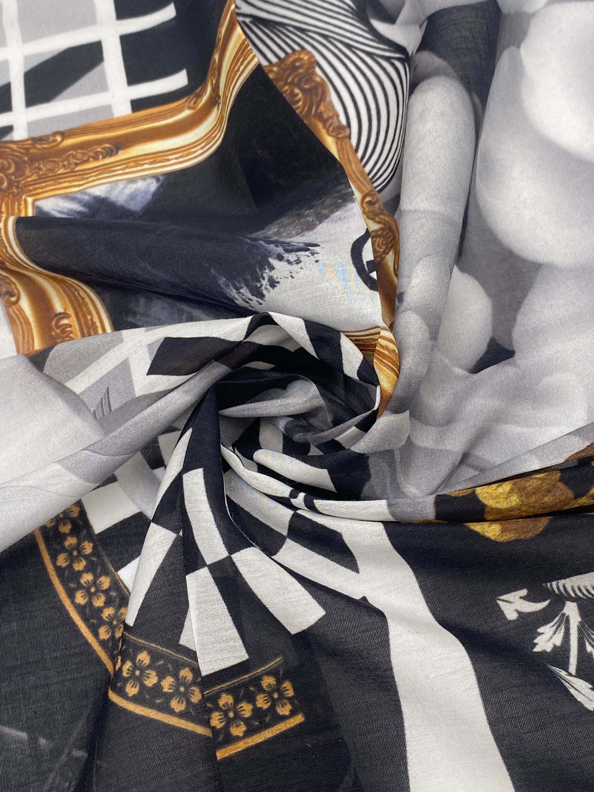 Smukt mønstret tørklæde fra JUST D'LUX. Silketørklædet er i en skøn blanding af silke og bomuld.
