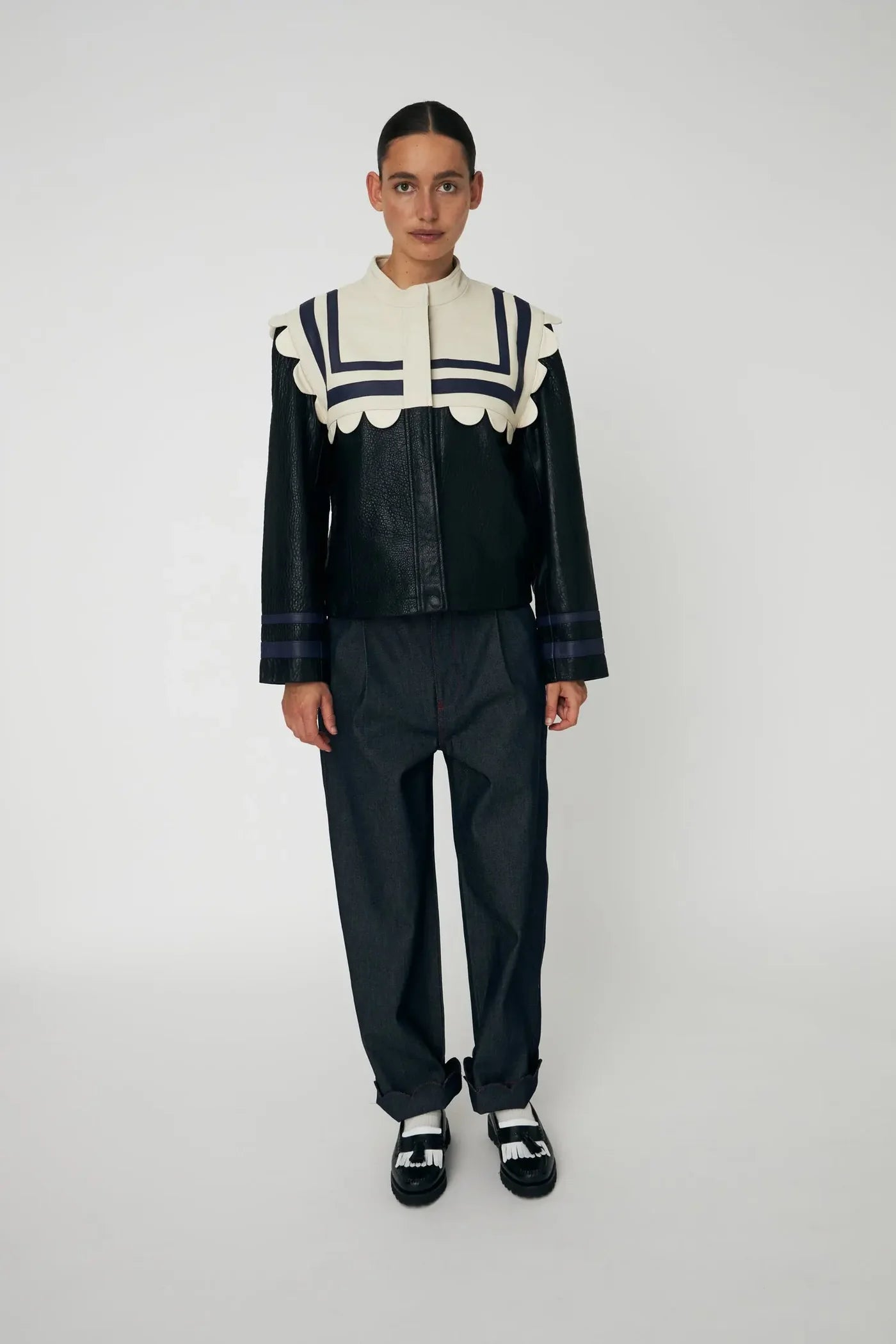Læderjakke designet med en sømandsinspireret yoke-del foran og bagpå.