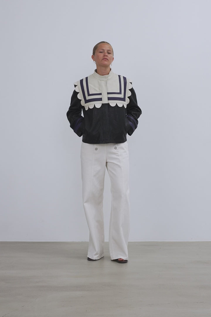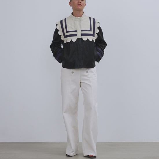 SØMANDS LÆDERJAKKE - CREME/BLACK