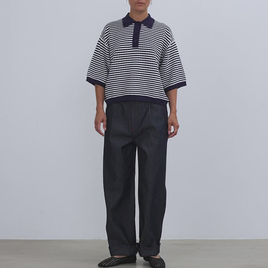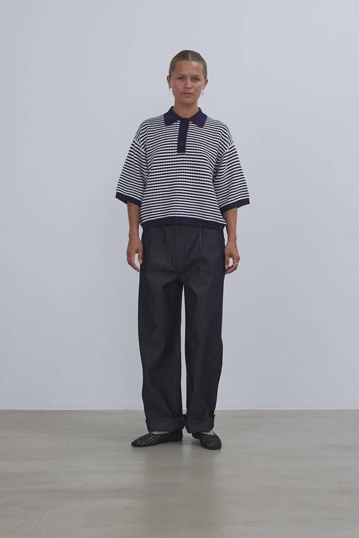 Det gennemgående stribede mønster skaber et rent, grafisk udseende og pasformen er let afslappet.