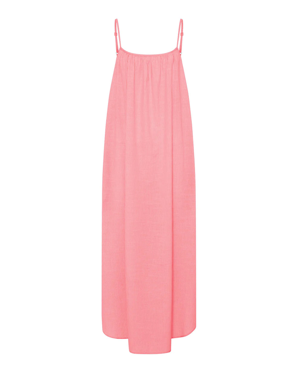 Vancouver stropkjole kan reguleres i længden på stropperne og i vidden med en snøre midt ryg i coral stribet.
